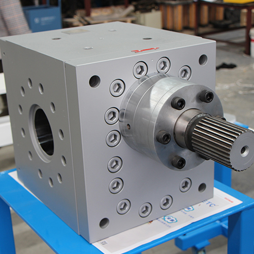 在塑料擠出系統中所應用的熔體齒輪泵通常為三件組合式結構,它是由兩個相互嚙合的主動齒輪和被動齒輪、中間泵體、兩側泵蓋及泵體外部加熱冷卻裝置組成的。??迫垠w齒輪泵內的主動齒輪由長軸直接與驅動裝置連接,被動齒輪在主動齒輪的帶動下共同朝輸送方向旋轉,將粘度較高、流動性較差的塑料熔體通過流道輸送到機頭。鄭州海科熔體泵廠家設計研發的熔體泵應用于擠出系統具有穩壓、計量、提高擠出機生產能力等優勢;它廣泛應用于塑料、樹脂、橡膠制品的擠出成型。